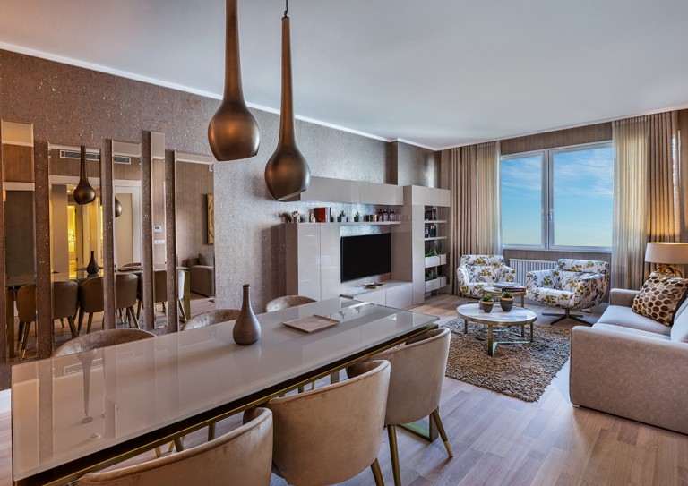 این پروژه در زمینی به مساحت 16 هزار متر مربع ساخته شده است. دارای 830 آپارتمان های مسکونی مجلل و 20 واحد تجاری شامل 4 برج که سه برج آن 23 طبقه و یکی 22 طبقه است. 526 آپارتمان یک خوابه، 261 آپارتمان دو خوابه و 43 آپارتمان سه خوابه در پروژه وجود دارد. آپارتمان های مسکونی برای استفاده به عنوان دفاتر اداری و خانگی در طرح مدیریت آماده شده اند. مساحت آپارتمان ها بین 50 تا 130 متر مربع متغیر است.
